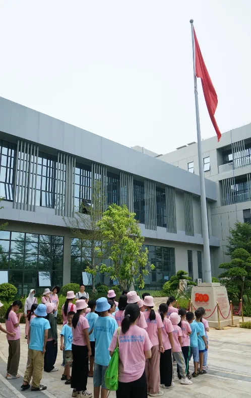 紧接着,孩子们来到了建党百年庆典红旗——070号红旗前。讲解员讲述了星空电子药业集团与庆典红旗的深厚渊源。孩子们听得津津有味,眼中闪烁着对党和国家的热爱与敬仰。